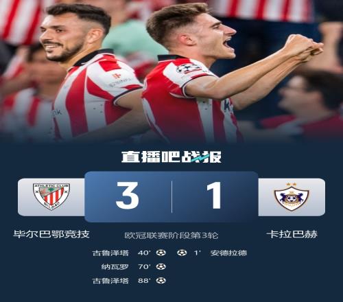 毕巴本轮欧冠3-1击败卡拉巴赫,毕巴逆转取胜,吉鲁泽塔双响。
